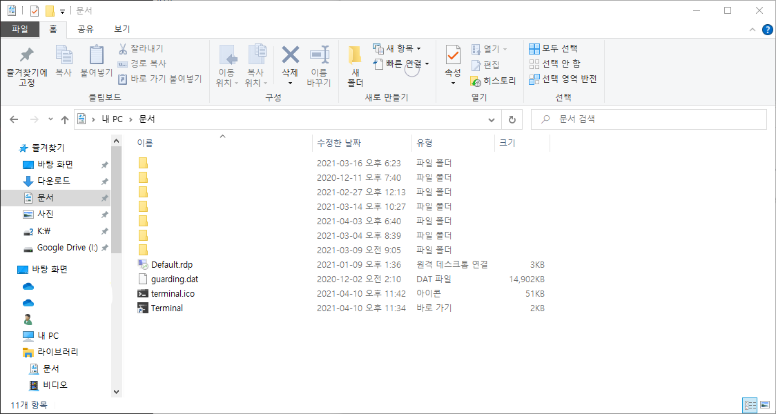터미널 바로가기는 파일탐색기에서