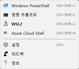 윈도우 터미널 앱에서 +오른쪽 버튼을 누르면