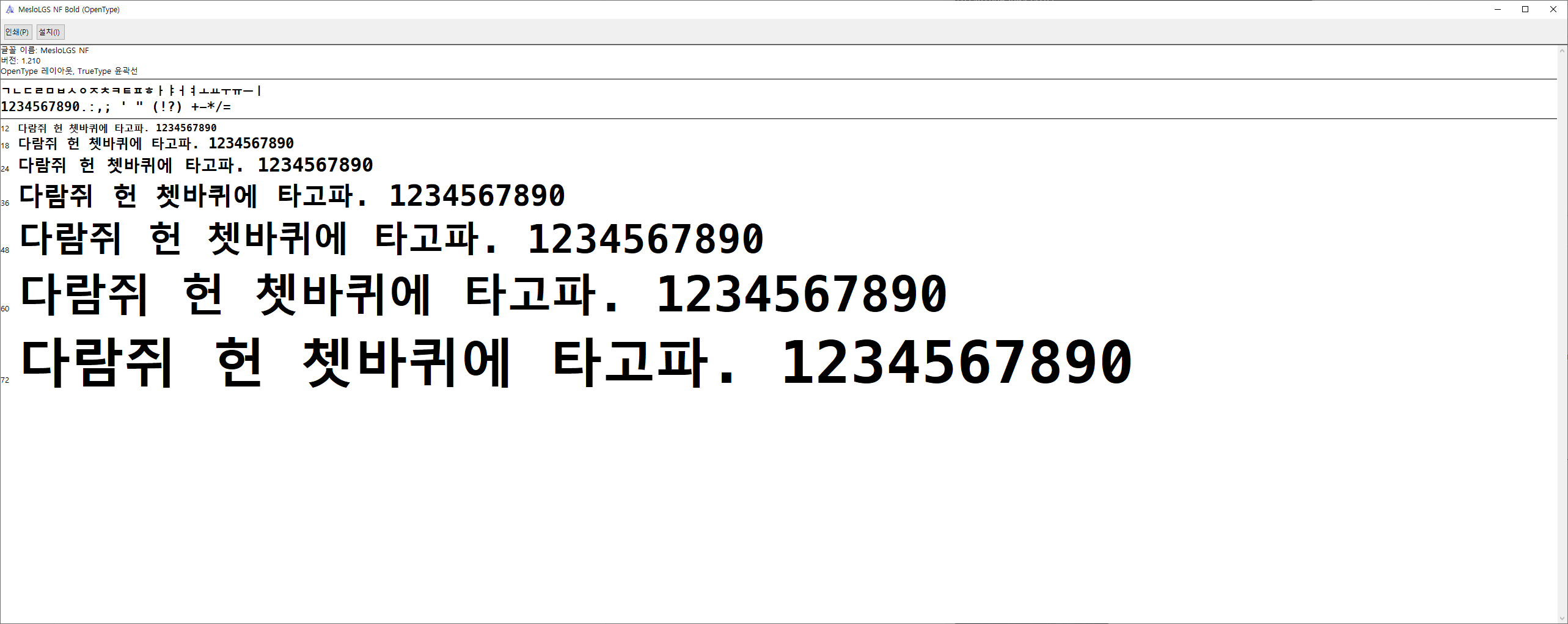 위 폰트들을 모두 다운로드해서 설치합니다.