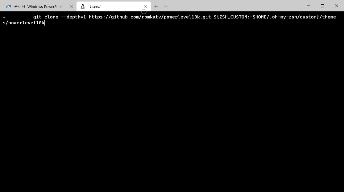 git clone --depth=1 https://github.com/romkatv/powerlevel10k.git ${ZSH_CUSTOM:-$HOME/.oh-my-zsh/custom}/themes/powerlevel10k